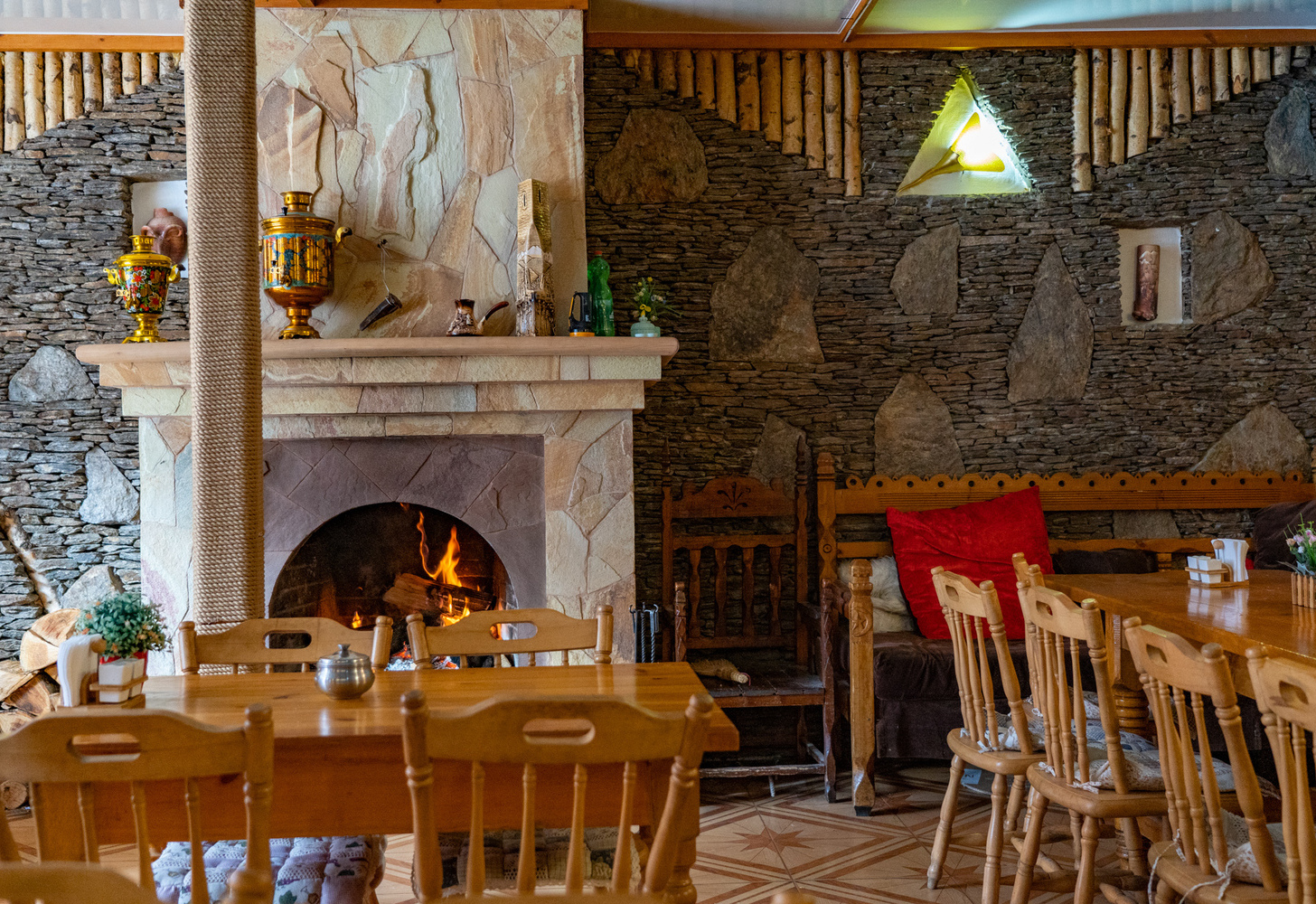 Гостям доступны разнообразные услуги: от партии на бильярде и бани до уютного кафе с камином, где можно насладиться всем ассортиментом кавказсского хлебосолья.